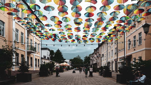 Над головами людей уже несколько месяцев висит композиция из разноцветных зонтиков, покачивающаяся под дуновениями тёплого ветерка. С момента появления этот арт-объект стал одним из завсегдатаев социальных сетей, ведь не сфотографировать парящие зонтики просто невозможно.