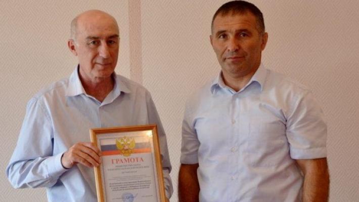 Председателю комитета по физической культуре, спорту и общественным организациям Черекского района Хасану Аккиеву вручена грамота ведомства за пропаганду и популяризацию Всероссийского физкультурно-спортивного комплекса «Готов к труду и обороне» в Кабардино-Балкарии, а также комплекты футбольных, волейбольных и баскетбольных мячей.