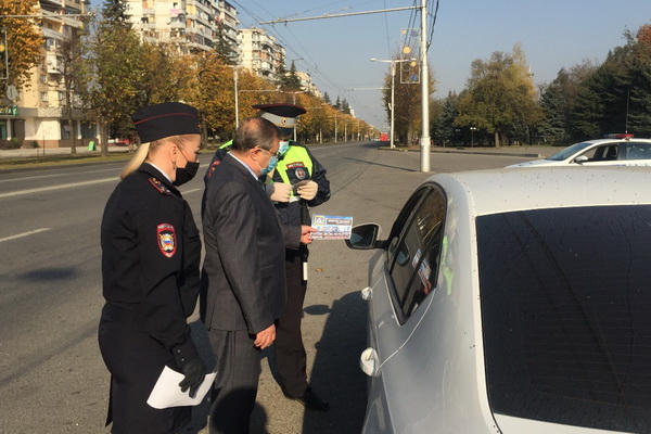 На центральной улице Нальчика прошла акция для водителей и пешеходов. В мероприятии приняли участие автоинспекторы ОГИБДД во главе с врио заместителя командира ОР ДПС управления МВД России по Нальчику Петром Андреевым и представитель общественного совета при управлении Хамидби Боготов.
