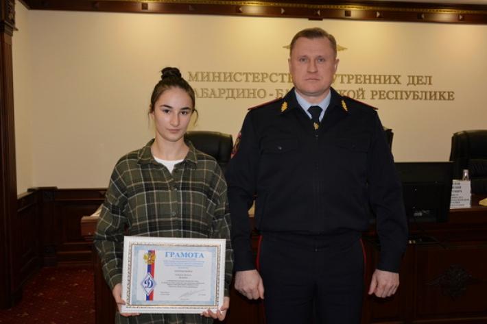 В МВД по КБР прошло награждение победителей первенства Северо-Кавказского федерального округа по дзюдо среди юношей и девушек до 18 лет. Ими стали Арианна Конокова, Алибек Бароков, Джабраил Гудов, Ролан Кунижев и Кантемир Замбатов.