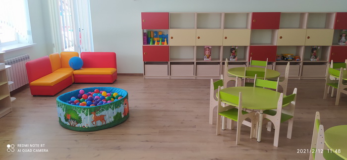 В новом здании созданы все условия для воспитания и развития детей, оборудованы просторные групповые и спальные помещения, спортивный зал, современный пищеблок и медицинский кабинет.