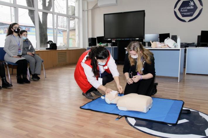 Обучение основным навыкам оказания первой доврачебной помощи проходило в несколько потоков в течение трёх дней. В общей сложности курсы охватили три сотни человек – студентов вузов и колледжей, школьников. С участниками проекта работали специалисты Кабардино-Балкарского регионального отделения «РКК» Камила Пилова и Танзиля Аппаева.