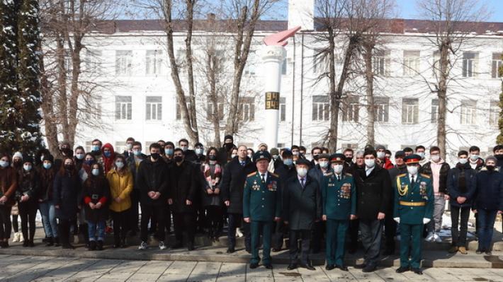 Торжества в честь День защитника Отечества в Кабардино-Балкарском государственном университете им. Х.М. Бербекова начались с традиционного возложения цветов к памятнику студентам, преподавателям, сотрудникам КБГУ, погибшим в годы Великой Отечественной войны, расположенному в сквере университета.