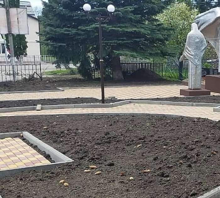 Завершена установка бордюрных камней в селе Камлюко. На этапе завершения устройство пешеходных дорожек и площадок из тротуарной плитки. Ведётся засыпка цветочных клумб чернозёмом. Изготовлены скамейки и осветительные конструкции.