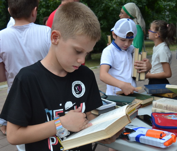 Каждый желающий мог принести несколько книг (как, впрочем, и в любой другой день), или же выбрать что-то себе по вкусу. Помимо этого организаторы устроили своеобразный «открытый микрофон» – любимые произведения читали дети, удивляя артистичностью исполнения. В парке прозвучали стихи республиканских, российских и зарубежных авторов, и даже отрывок из знаменитого «Фауста» Гёте.