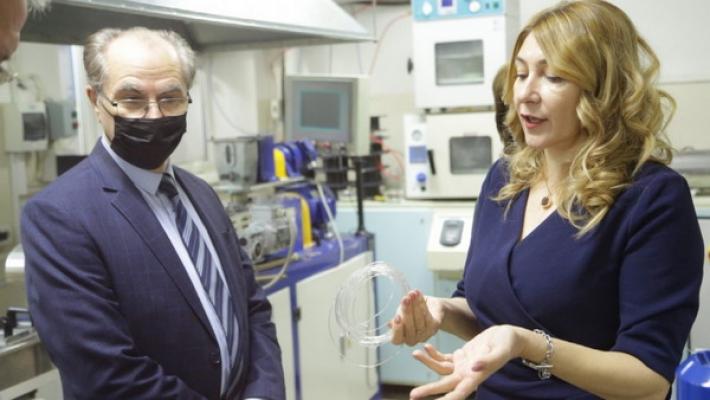 Непосредственно в лаборатории проректор продемонстрировала врачам макет фрагмента черепа человека, изготовленного с помощью 3D-печати из биосовместимых материалов, а также полимеры, созданные для внедрения в различных сферах медицины.