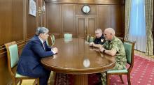 Глава КБР Казбек Коков провел первую рабочую встречу с вновь назначенным командующим Северо-Кавказским округом войск национальной гвардии Российской Федерации генерал-лейтенантом Сергеем Захаровым.