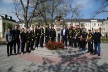 Команда Северного флота по регби-7 приехала в Кабардино-Балкарию для участия в финальном турнире чемпионата России. Моряки-североморцы возложили цветы к памятнику адмиралу Арсению Григорьевичу Головко, который в годы Великой Отечественной войны командовал Северным флотом и сыграл выдающуюся роль в обороне Заполярья, обеспечении безопасности морских конвоев союзников. Сквер имени А.Г. Головко был разбит на улице, носящей его имя, в прошлом году – к 75-летию Великой Победы.