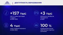 - Во всех регионах мы возводим и обновляем дошкольные учреждения. Они теперь могут принять на 157 тысяч ребят больше, чем ещё четыре года назад. Родителям стало проще устроить туда детишек от двух месяцев до семи лет.