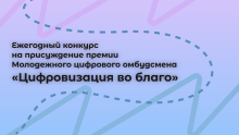 С 10 февраля стартовал конкурс на присуждение премии Молодежного цифрового омбудсмена «Цифровизация во благо», который направлен на выявление и поддержку молодежных инициатив в сфере цифровых технологий. Организатором премии выступает Молодежный цифровой омбудсмен в рамках Молодежного цифрового форума (Youth RIGF).