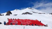 Копию знамени Победы площадью 200 квадратных метров развернули на склонах Эльбруса активисты движения «Юнармия» из Москвы и Красноярского края и провели патриотическую акцию, сообщили в «Кавказ.РФ».