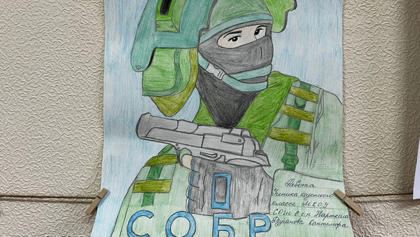 В рамках акции «Дни Росгвардии» сотрудники СОБР «Эльбрус» Управления Росгвардии по КБР провели выставку рисунков учащихся кадетского класса школы № 6 г. Нарткалы.