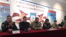 На вопросы журналистов ответили председатель спорткомитета Росгвардии полковник Павел Пак, а также бойцы Росгвардии, которым предстоит участие в чемпионате, среди которых спортсмены высшего уровня - победители и призёры чемпионатов мира: рядовой Тахир Токарев, лейтенант Азамат Сомгуров, старший лейтенант Салимгирей Расулов.