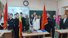 В нальчикской седьмой школе прошёл урок мужества «Война и мир в истории одной дивизии», организованный центром социокультурных проектов «Мирт» (директор – член Общественной Палаты КБР Юлия Ордокова) при поддержке Министерства по делам национальностей и общественным проектам и Общественной палаты КБР.