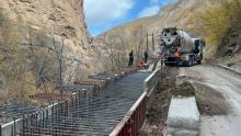 На двухкилометровом отрезке, где располагаются Чегемские водопады, уже возведены верховые подпорные стенки, ведутся работы по низовым, а также выполняется уширение дороги и устройство водопропускных труб. Дорожники также устанавливают ригельные консоли, необходимые для дальнейшего устройства подвесного тротуара.