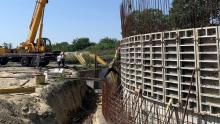 Комиссия посетила объект, на котором велись работы по бетонированию усреднителя резервуара и первого яруса наружной стены здания биологической очистки, монтажу мелкощитовой опалубки второго яруса.