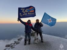 На высочайшую вершину Европы – Эльбрус – спасатели Кабардино-Балкарии подняли флаг 35-летия МЧС России.