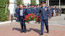 Праздничные мероприятия, посвящённые 74-й годовщине Победы в Великой Отечественной войне 1941-1945 годов, для сотрудников УФСИН начались у мемориала погибших сотрудников уголовно-исполнительной системы.