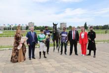 Глава КБР Казбек Коков поздравил победителей основной скачки на Приз Победы и вручил им приз. Дистанцию 1600 метров выиграл серый Грей Фог владельца Шамиля Баймурадова, мастер-тренер и мастер-жокей Анзор Альбердиев.