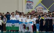 Организаторы раздали детям флажки с цветами российского триколора, прозвучал гимн России.