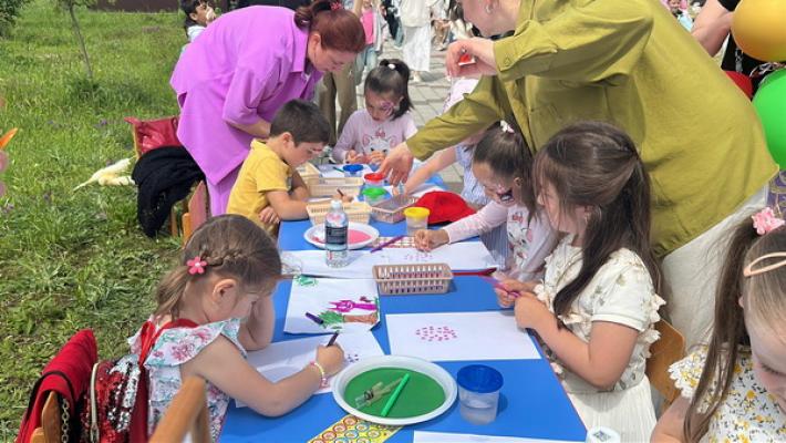 Дошкольные образовательные учреждения, детская школа искусств и центр детского творчества подготовили тематические мастер-классы по рисованию, аппликации, вышивке национальных орнаментов - 15 площадок различной направленности. По приглашению местного отделения «Движение Первых» и филиала государственного фонда "Защитники Отечества" ветеран специальной военной операции Залим Проштов, увлекающийся рисованием, поделился с ребятами секретами изображения объёмных рисунков. На спортивных площадках проходили эстафеты и мини-соревнования: комитет по физической культуре, спорту и молодёжной политике местной администрации Баксана организовал открытые городские турниры по тяжёлой атлетике и челночному бегу. По инициативе «Навигаторов детства» г. о. Баксан и студентов КБСХК, при поддержке местной администрации в парке была высажена аллея молодых деревьев.