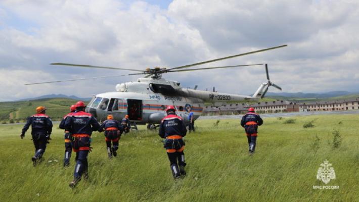 В совместных тренировках с применением авиации участвовали 16 специалистов МЧС России.