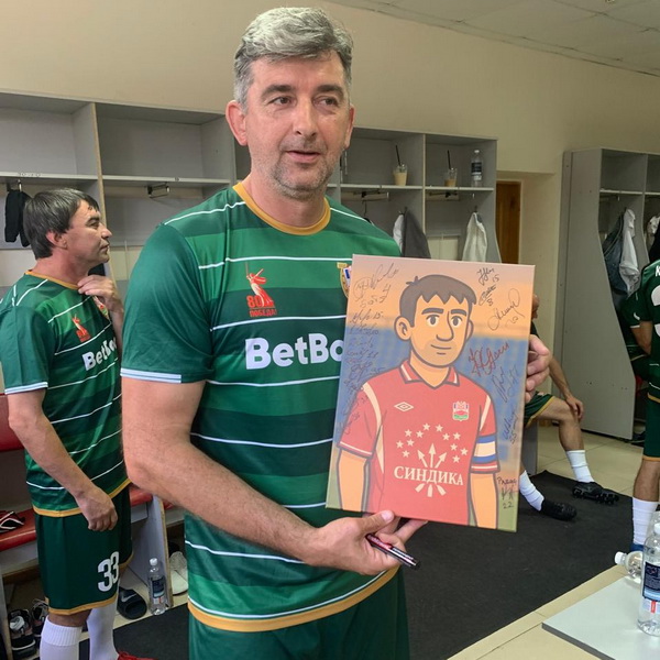 При входе каждому футболисту вручалась специальная картина. О них стоит рассказать подробно. На картине был изображён игрок с стиле японского аниме, когда догадаться о персонаже удавалось лишь по номеру или каким-то деталям. Полузащитник Олег Самсонов был готов направить рекламацию: «Это не я, разве у меня такие глаза?», но его партнёр Виктор Файзулин возразил: «Сэм, это ты, один в один!» Олег спорить перестал и дал себя сфотографировать на фоне девиза: «Всё преодолимо, когда есть цель!».