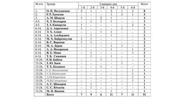 Рамазан Хамизов выиграл и ОКС, и Дерби![]() В рейтинге тренеров, чьи лошади выигрывали на нальчикском ипподроме в сезоне 2025 года, после шестого скакового дня больших изменений не произошло. Самое заметное – увеличение триумфаторов. За один день в число победителей вошли ещё четыре тренера - С. Колесников, С. Каппушев, Д. Карачиев и М. Симанкин. Теперь их 24. Ольга Полушкина, добавив в свой актив ещё две победы, продолжает единолично лидировать. Ближайшего преследователя она опережает на 3 балла, но при рассмотрении становится понятно – интрига жива и абсолютно непредсказуема. Все тренеры-триумфаторы Нальчикского ипподрома-2025