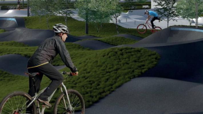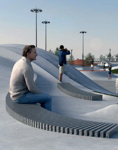 В центре экстрим-парка разместятся зелёные зоны для тех, кто в первый раз посещает парк или не имеет опыта в экстремальных видах спорта. Частью парка станет памп-трек – специальная трасса с ямами и кочками, состоящая из двух зон – детской и скоростной для более старших любителей движения. Бетонный скейт-парк с чашками, стрит-зоной, детская площадка и пергола для защиты от солнца, зона для паркура и площадь для проведения различных мероприятий и сцена – в парке каждый найдёт что-то для себя. Также на территории будет административное здание, которое планируется украсить мозаикой, и парковка на 42 машиноместа. Уличную мебель выполнят из переработанного пластика, хорошо зарекомендовавшего себя в уже реализованных проектах.