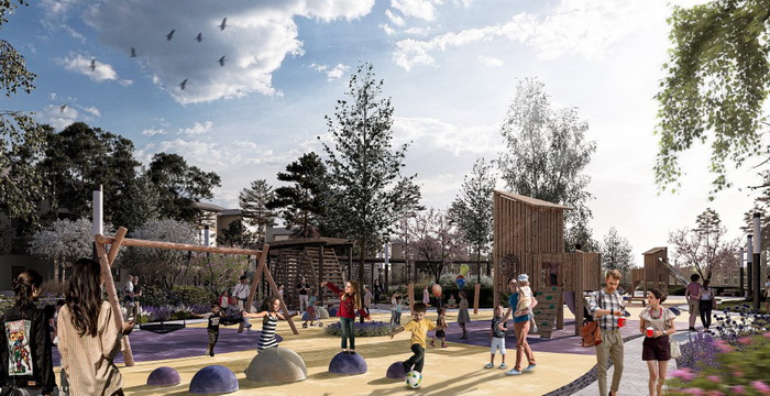 Предусмотрены площадка для аттракционов, зона тихого отдыха, сад роз и кленовая аллея. На аллее героев будут высажены тюльпаны.