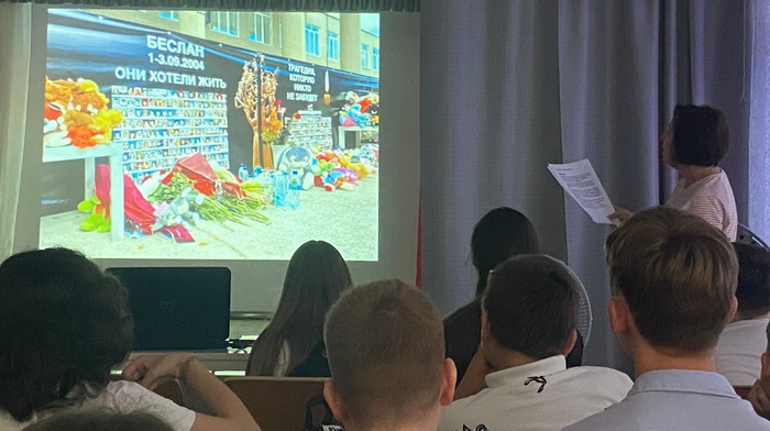 В ДК «Восторг» в Прохладном прошло мероприятие «Эхо Беслана». В ходе встречи ведущая рассказала о сущности терроризма, о последствиях терактов. Ребята посмотрели ролики, созданные в память о жертвах теракта в Беслане. Присутствующие почтили память жертв террора минутой молчания.