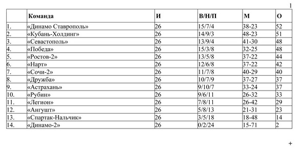 Вторая лига «Б». Группа 1. Положение на 14 сентября