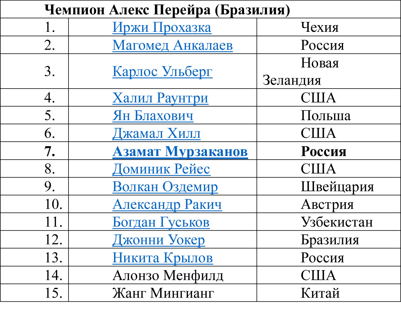 Сильнейший промоушен мира UFC (Ultimate Fighting Championship) опубликовал обновлённый рейтинг своих бойцов во всех весовых категориях. В полутяжёлом весе (до 93 кг) Азамат Мурзаканов после победы над австрийцем сербского происхождения Александром Ракичем резко поднялся в рейтинге сразу на три позиции. Теперь у Азамата счастливый номер – седьмой.
