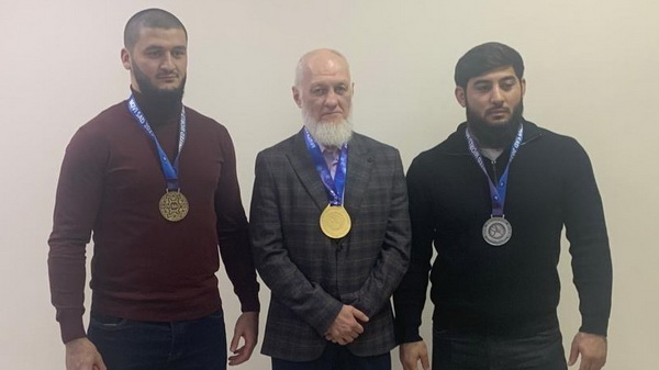 На снимке слева направо: чемпион мира Мухамед Урусов, победитель первенства мира среди ветеранов Мурат Маржохов, серебряный призёр чемпионата мира Ислам Таппасханов.