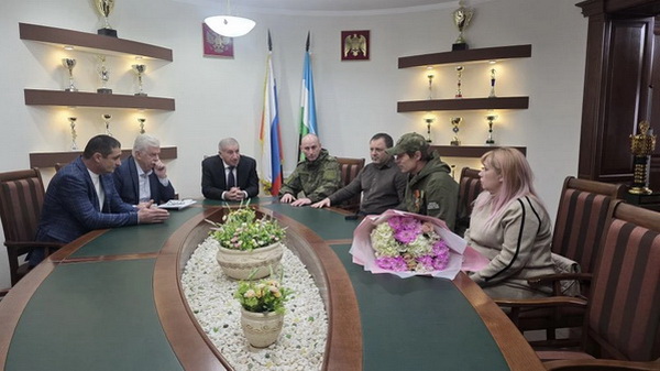 В администрации Баксанского района состоялась памятная церемония, в ходе которой исполняющий обязанности главы администрации Адиб Абрегов передал государственные и ведомственные награды родственникам военнослужащих, героически погибших при исполнении воинского долга в ходе специальной военной операции.