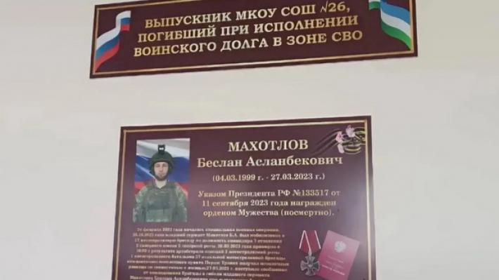 Памятную доску открыли глава администрации села Адиюх и дядя Беслана Махотлова. Участники траурного мероприятия возложили к ней цветы как символ благодарности, почтения и вечной памяти.