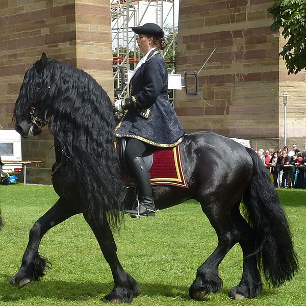 Родиной породы считается северная область Нидерландов – Фрисландия: там эти кони всегда пользовались большим почётом и получили негласное название «чёрное золото Голландии». Цена на фризскую лошадь стартует с отметки в $ 11 тыс. и не имеет верхнего предела. Порода просто идеальна для использования в торжественных церемониях. Лошадь очень вынослива, поэтому может подолгу работать без устали. Другой отличительной чертой является энергичный темперамент, который достался ей от андалузских лошадей. Острый ум, природная любознательность и хорошая память делают этих коней пригодными для обучения.