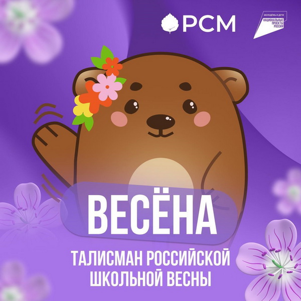 Медвежонок Весёна - символ «Российской школьной весны»У Всероссийского творческого фестиваля школьников появился официальный талисман. Теперь медвежонок Весёна будет сопровождать участников на всех этапах проекта.