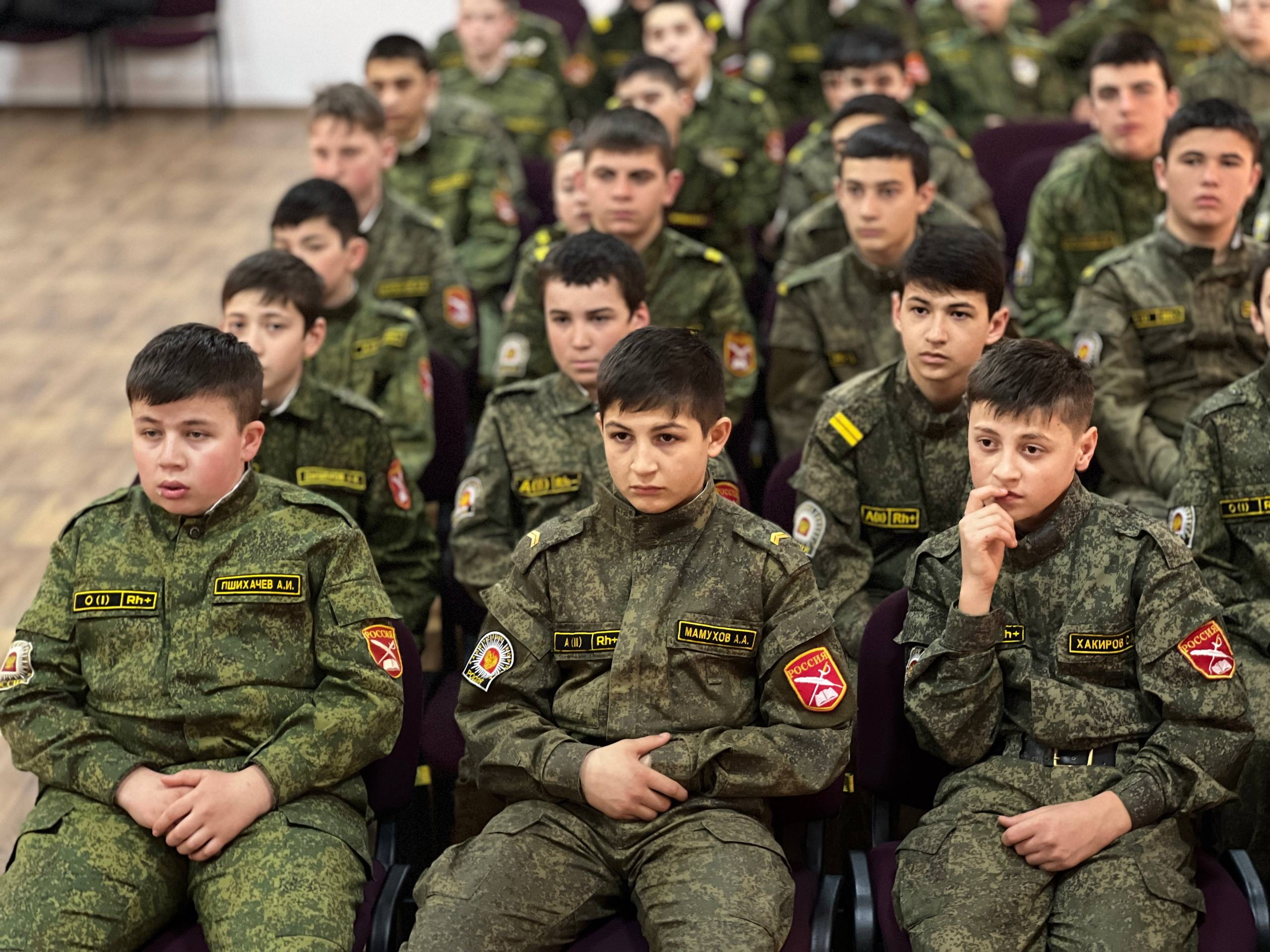 В рамках ведомственной акции «Дни Росгвардии» заместитель начальника Баксанского отдела вневедомственной охраны Алим Гуков и председатель совета ветеранов территориального управления Росгвардии Руслан Хужоков провели урок мужества с воспитанниками кадетской школы-интерната № 1 им. З. Х. Дикинова в с. Атажукино. Встреча была приурочена к 10-летию Росгвардии и 215-й годовщине со дня создания войск правопорядка.