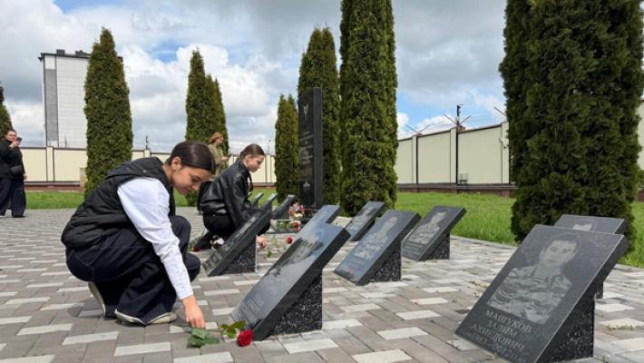 Мероприятие началось у мемориального комплекса сотрудникам, отдавшим жизнь за мир и безопасность граждан. Ребятам рассказали о боевом пути и достижениях отряда, после чего собравшиеся почтили память героев минутой молчания и возложили цветы к памятнику.