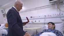 Глава местной администрации городского округа Баксан Хачим Мамхегов встретился с участником специальной военной операции, ветераном боевых действий Кантемиром Назаровым.