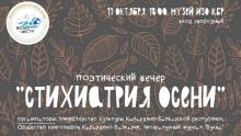 Хорошая новость для поклонников молодой республиканской литературы - в Нальчике, в Музее изобразительных искусств КБР имени А.Л. Ткаченко 11 октября в 18 часов пройдёт музыкально-поэтический вечер «Стихиатрия осени». Со своими произведениями выступят молодые авторы КБР и гости из соседних республик.