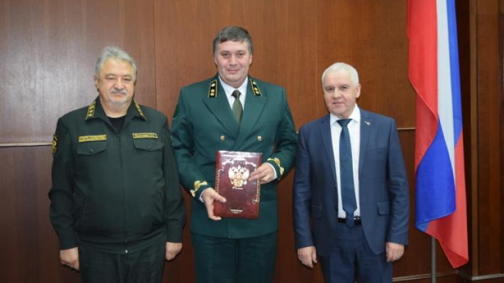Диплом, подтверждающий почётное звание, начальник Департамента лесного хозяйства по Южному федеральному округу Пётр Костенич вручил на совещании министру природных ресурсов и экологии КБР Ильясу Шаваеву.