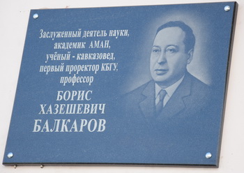 В Нальчике на улице Кешокова состоялось торжественное открытие мемориальной доски профессору, заслуженному деятелю науки КБАССР Борису Хазешевичу Балкарову.