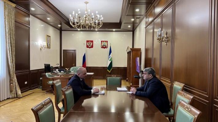Сегодня Глава КБР Казбек Коков провел рабочую встречу с министром промышленности, энергетики и торговли КБР Шамилем Ахубековым.