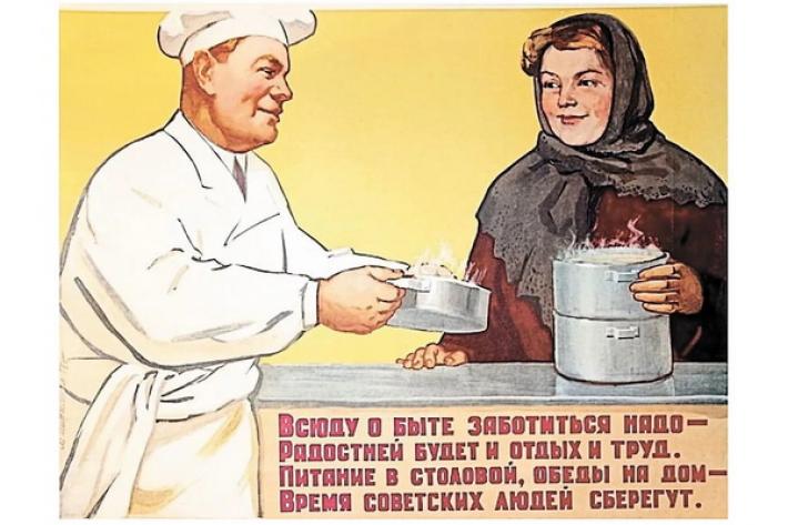 К 1921 году в столовых уже питалось около девяти миллионов советских граждан. Столовые спасали людей в голодный период и экономили драгоценное рабочее время. Тогда же появился лозунг «Долой кухонное рабство!». Женщина больше не должна «изнывать в плену кастрюль и сковородок» – так считали идеологи революции, а революционные поэты посвящали общепиту целые произведения.