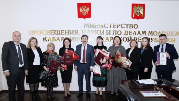 Торжественное чествование и награждение дипломами педагогов филиала школы-интерната №5 в с. Заюково для детей-сирот и детей, оставшихся без попечения родителей, прошло в Министерстве просвещения, науки и по делам молодёжи КБР.