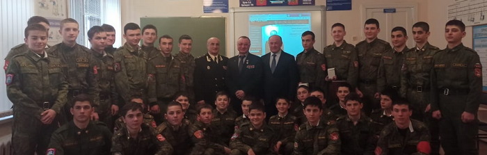 К кадетам приехали Герой России, первый в ВМФ Российской Федерации кавалер трёх орденов Мужества, подводник, гидронавт, испытатель глубоководной военной техники, советник исполнительного директора экспедиционно-исследовательского отдела центра подводных исследований Русского географического общества, капитан 1-го ранга в отставке Евгений Бобров, председатель совета Национальной ассоциации офицеров запаса Вооружённых сил Российской Федерации «Мегапир» Жашарбек Атаев, заместитель исполнительного директора центра подводных исследований Русского географического общества Андрей Горшков и заместитель начальника экспедиционно-исследовательского отдела центра подводных исследований РГО, сотрудник экспедиционного центра Министерства обороны Российской Федерации Александр Агеев.