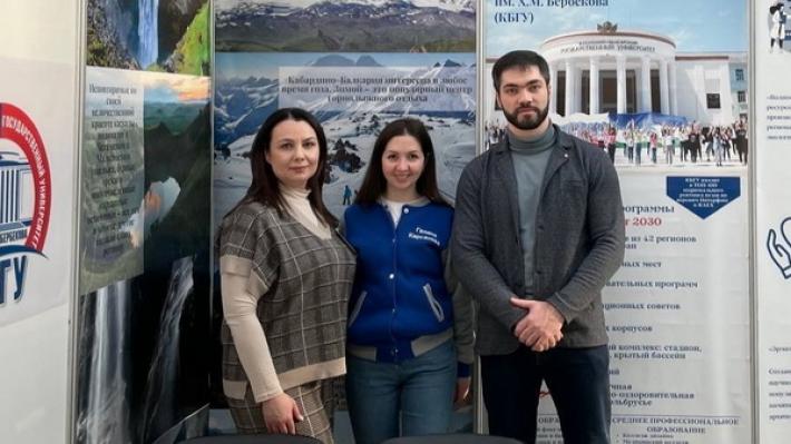 На выставочной площадке были стенды и павильоны порядка 100 вузов. У нас была возможность представить свои образовательные программы и поработать со специалистами, которые готовы трудоустроить наших выпускников или же студентов. Мы интенсивно обучались, знакомились с практиками других вузов, новинками, которые могут быть использованы в профориентационной работе. Обменивались контактами, раздавали участникам и посетителям наши буклеты и визитки. Уже сегодня к нам приходят письма, и я надеюсь, что старшеклассники обязательно рассмотрят КБГУ как хорошую и правильную альтернативу уже этим летом.