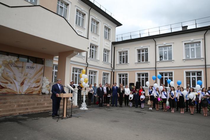 Глава КБР Казбек Коков поздравил с последним звонком выпускников новой школы в станице Солдатской Прохладненского района. В торжественном мероприятии принимали участие представители органов местного самоуправления муниципальных образований района, общественность, родители выпускников.